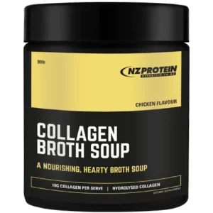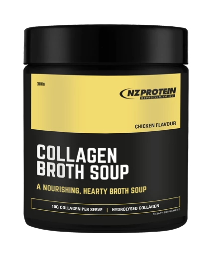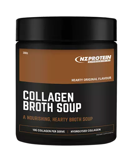 NZ Protein’s Collagen Broth Soup makes a nourishing soup when added to hot water. Packed with yeast extract and vegetables for natural hearty soup flavour, with 10g of hydrolysed collagen per serve.